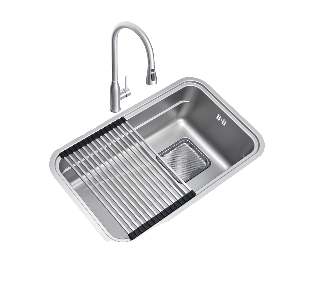 • Chậu dập nguyên khối inox sus304 1 hố kích thước rộng.